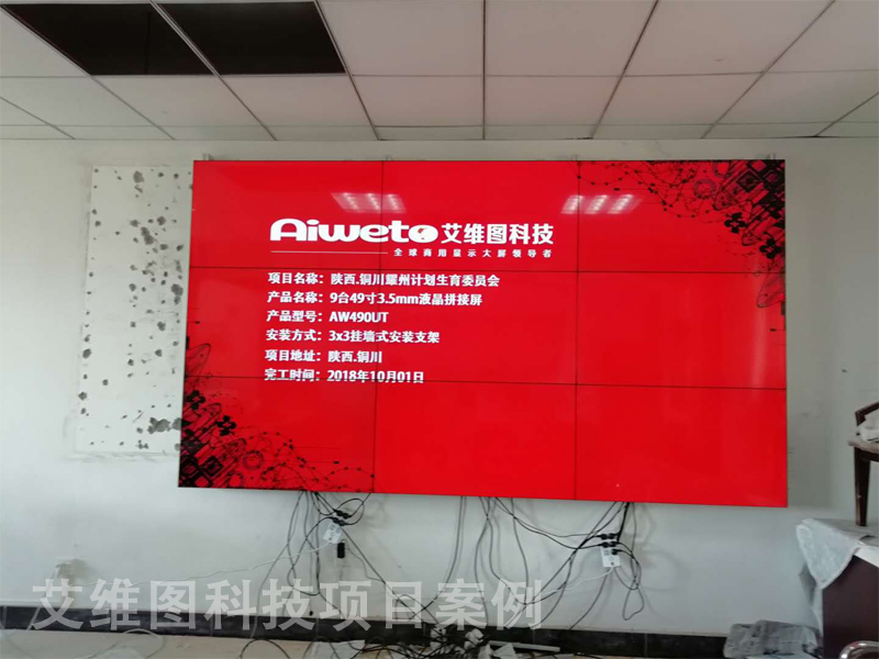 陜西銅川耀州計劃生育委員會安裝的艾維圖55寸3.5mm超窄邊液晶拼接屏案例,我們的工程師根據現場的環境布局,設計了一套3*3液晶拼接屏方案,擁有超高亮度和色彩一致性效果較好,本身就可被看作是充滿時尚科技元素的建筑裝飾,成為銅川耀州計劃生育委員會提升檔次的宣傳工具。這次拍的液晶拼接墻圖片非常的給力,讓群眾通過液晶拼接大屏能快速的了解計劃生育信息,及具體規劃。