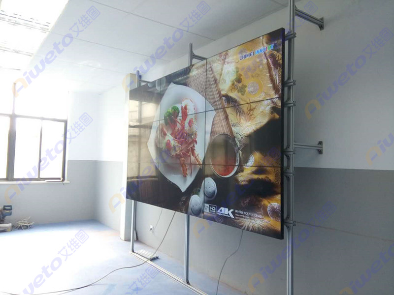 通過對客戶使用需求和部署環境的認真研究和考察,Aiweto(艾維圖)科技工程師給出了多套相關解決方案,最終選用了由9臺(Aiweto) 46寸液晶拼接單元組成的3×3大屏幕液晶拼接墻。(Aiweto) 46寸液晶拼接單元是艾維圖科技推出的一款超窄邊液晶拼接顯示器,采用工業級面板,采用先進的集成處理芯片,性能穩定,運動圖像補償等獨有的先進技術,有效的保證了輸出圖像的效果,支持7×24小時開機,拼接邊縫小,適合大屏液晶拼接項目應用。