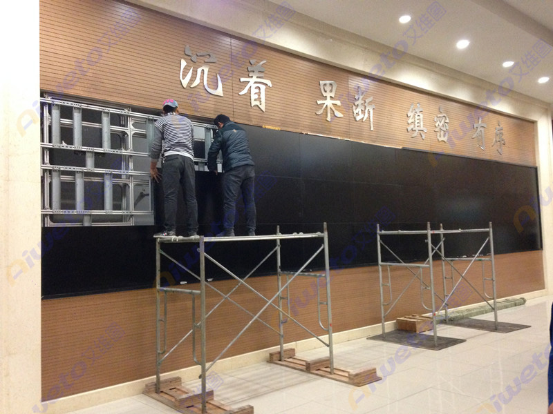 通過對客戶使用需求和部署環境的認真研究和考察,Aiweto(艾維圖)科技工程師給出了多套相關解決方案,最終選用了由40臺(Aiweto)55高亮液晶拼接單元組成的4×10大屏幕液晶拼接墻。(Aiweto)55寸液晶拼接單元采用工業級面板,采用先進的集成處理芯片,性能穩定,運動圖像補償等獨有的先進技術,有效的保證了輸出圖像的效果,支持7×24小時開機,拼接邊縫小,適合大屏液晶拼接項目應用。