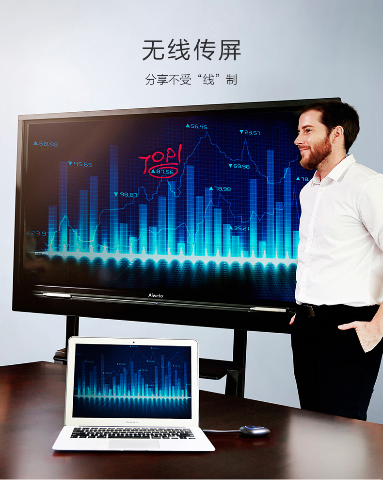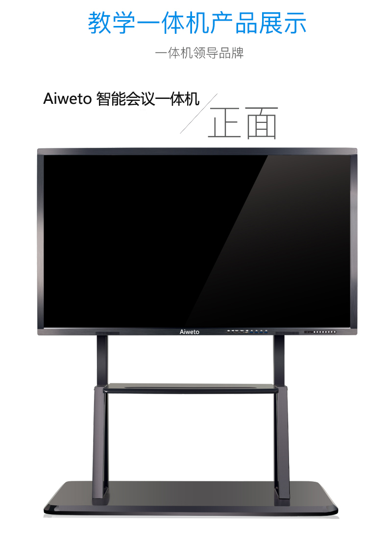 Aiweto(艾維圖)會議多媒體觸摸一體機(jī)采用LG商用IPS硬屏,全高(1920*1080)顯示,具有178度視角,高對比度和亮度,3D數(shù)字降噪,智能消除殘影、重影等失真現(xiàn)象,使得顯示畫面更清晰,穩(wěn)定,色彩更鮮艷;